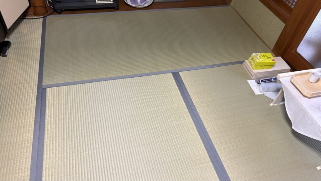今日はお仏壇の前に供えた花から水が染み出して畳が濡れたお客様から張り替えのご依頼いただきました。
